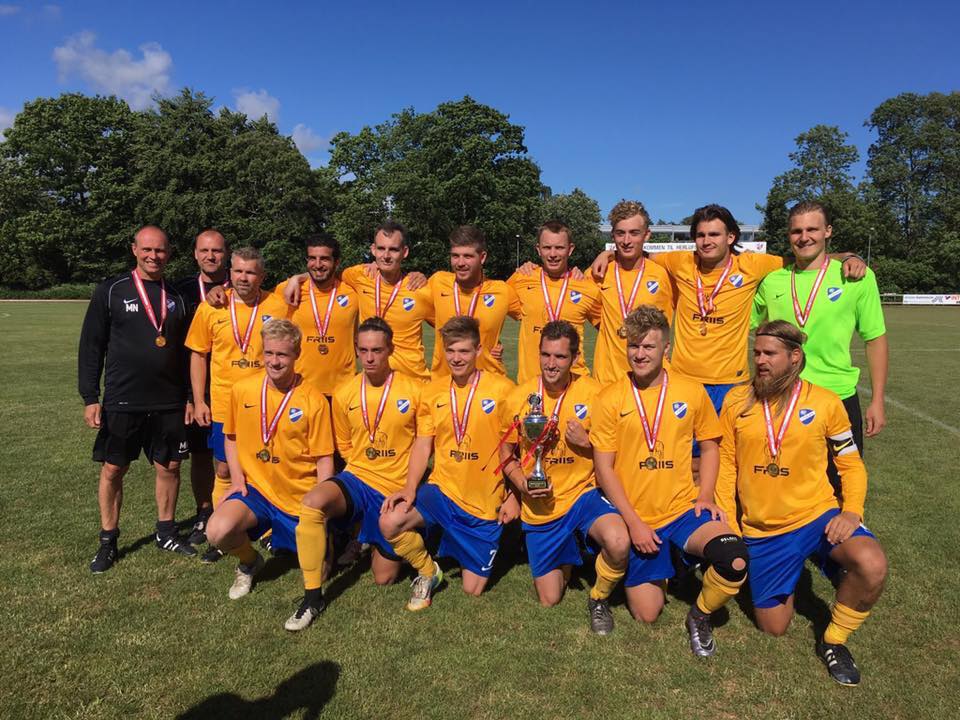 Vores 1. Senior besejrede i dag Herlufsholms ditto i SM-finalen. Afgørelsen faldt på straffe hvor målmand Kasper Juhl Jensen blev den store helt ved at redde 2 af Herlufsholms 4 første straffespark. Stort tillykke til drengene! Vi ser frem til den nye sæson i Danmarksserien.