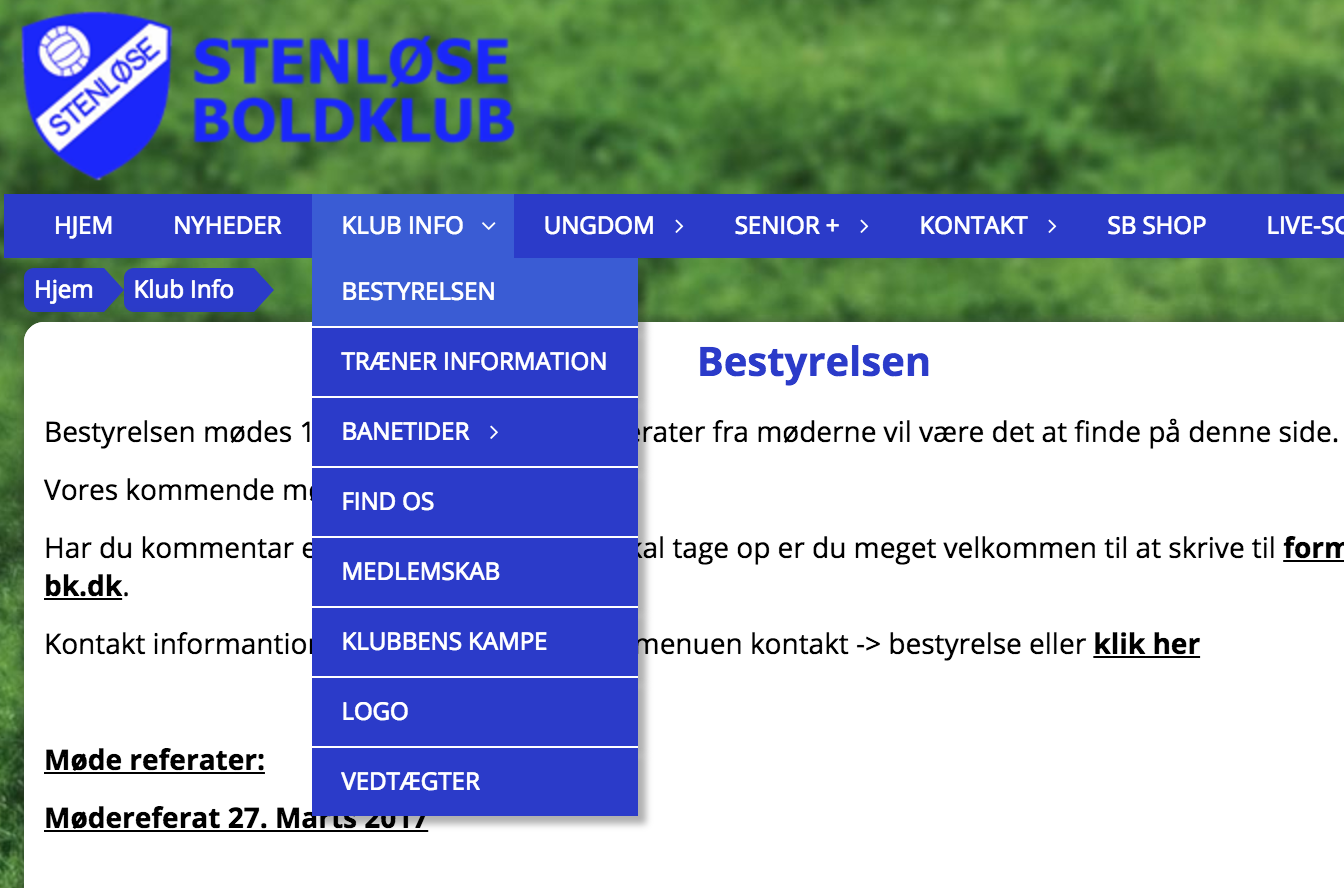 Fremadrettet vil referater fra vores bestyrelsesmøder være tilgængelige på klubbens hjemmeside. Under menupunktet "Klub Info" er der kommet et nyt menu punkt som hedder bestyrelsen. Her vil I kunne finde ud af hvornår bestyrelsen mødes næste gang. Du vil også her kunne finde det seneste mødereferat. Mødereferatet vil også være at finde i klubhuset på opslagstavlen.